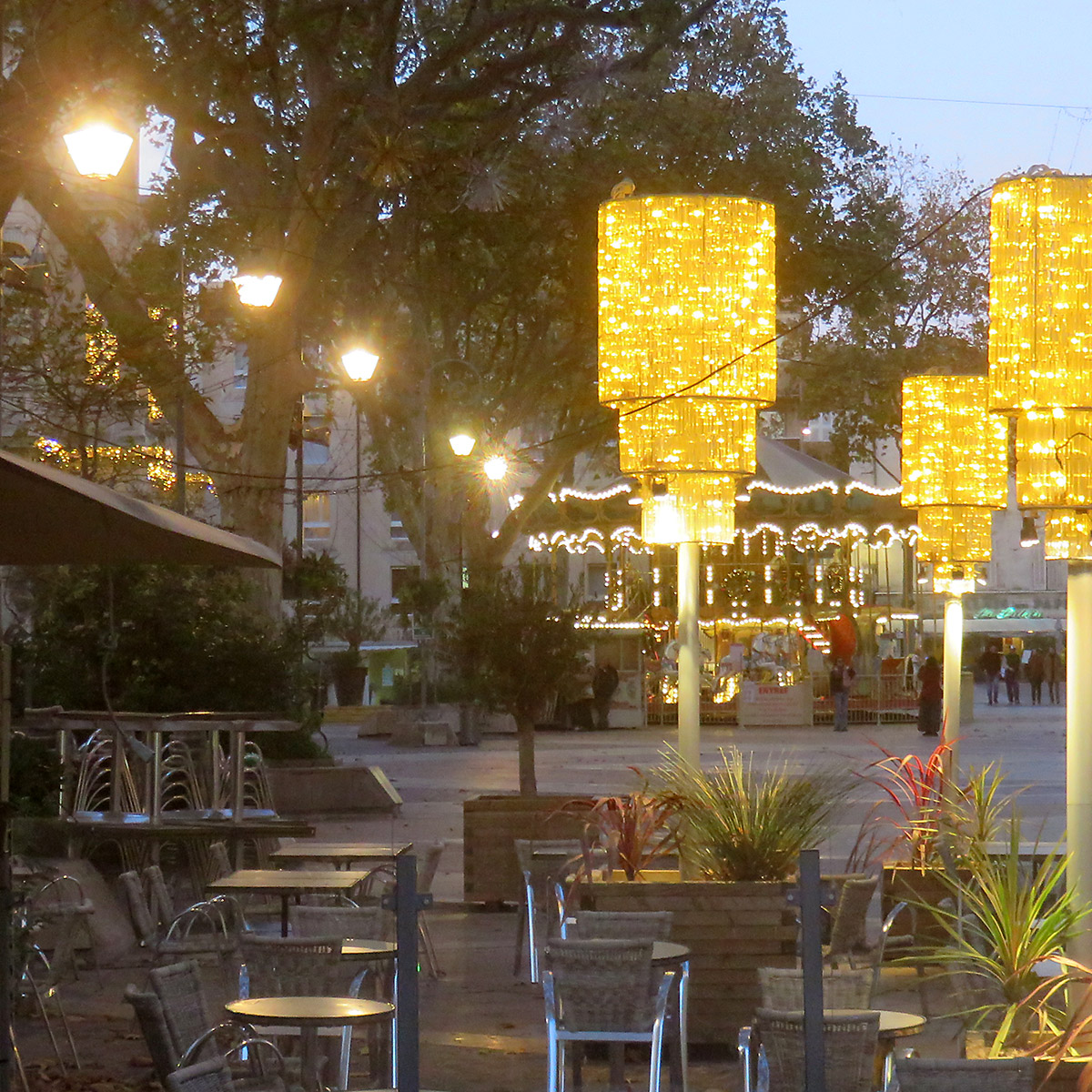 2025. 27. novembre 26/11/2025 18:15 Lien permanent Tags : lumières, soir, lumières du soir, place, horloge, manège, terrasse, platanes 0 commentaire Tweet