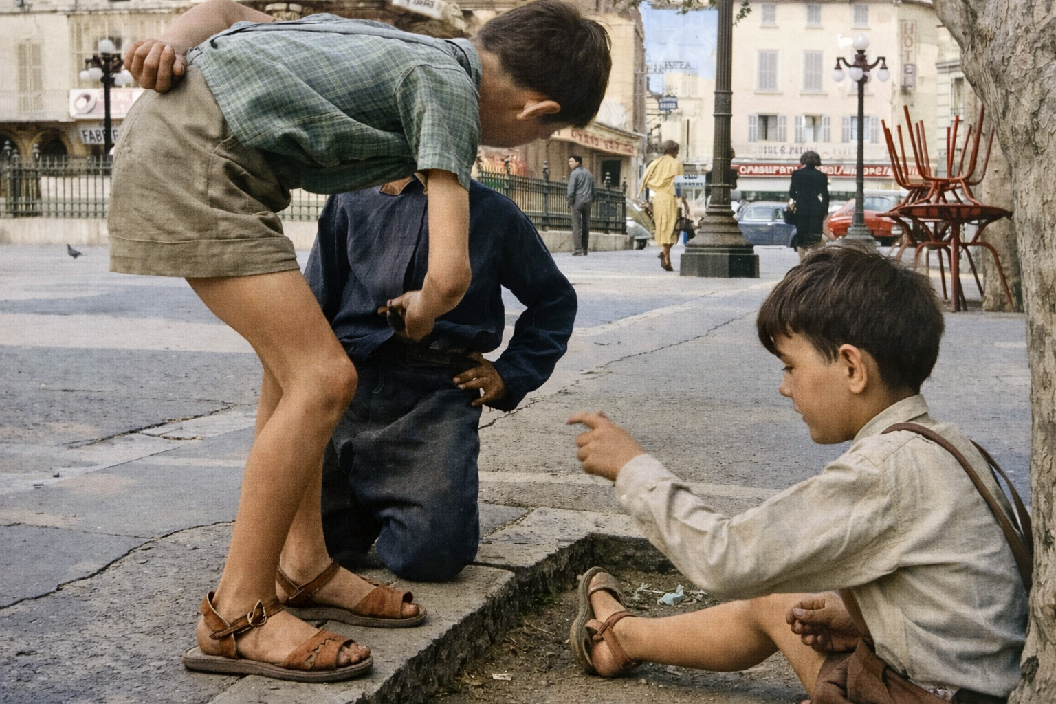 2026. 03. avril Plaço de la Reloge Place de l'HorlogeHorloge squareHorlogeplatz Photo Janine Niepce sans date colorisée par une IA. Lien permanent Tags : janine niepce, horloge, enfants, jeu 0 commentaire Tweet