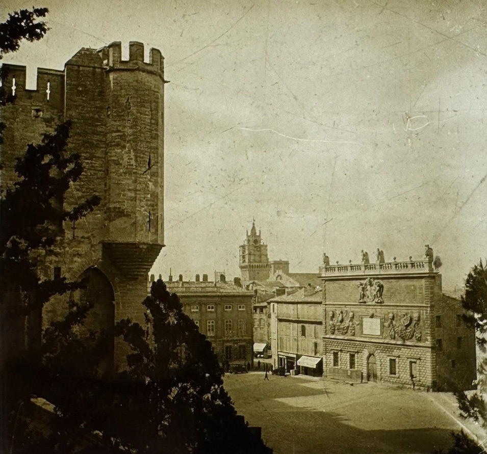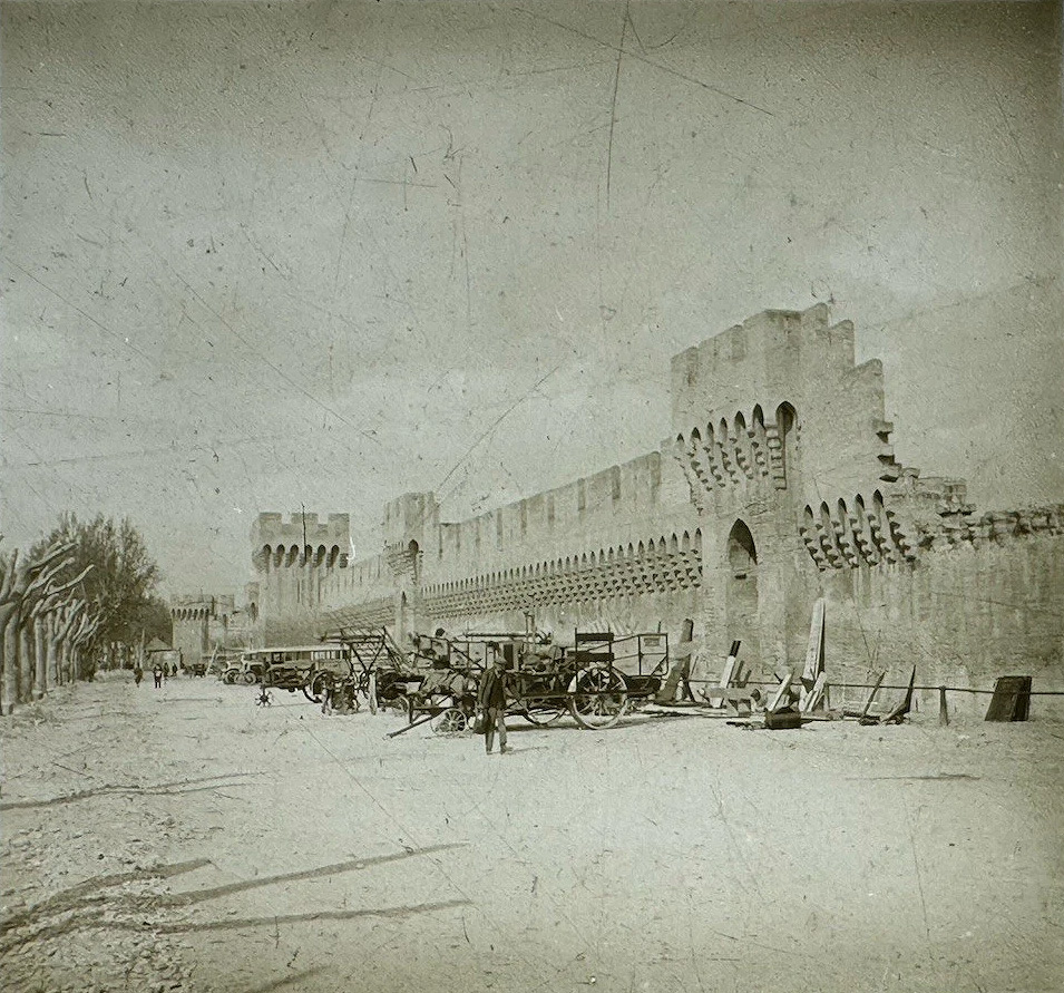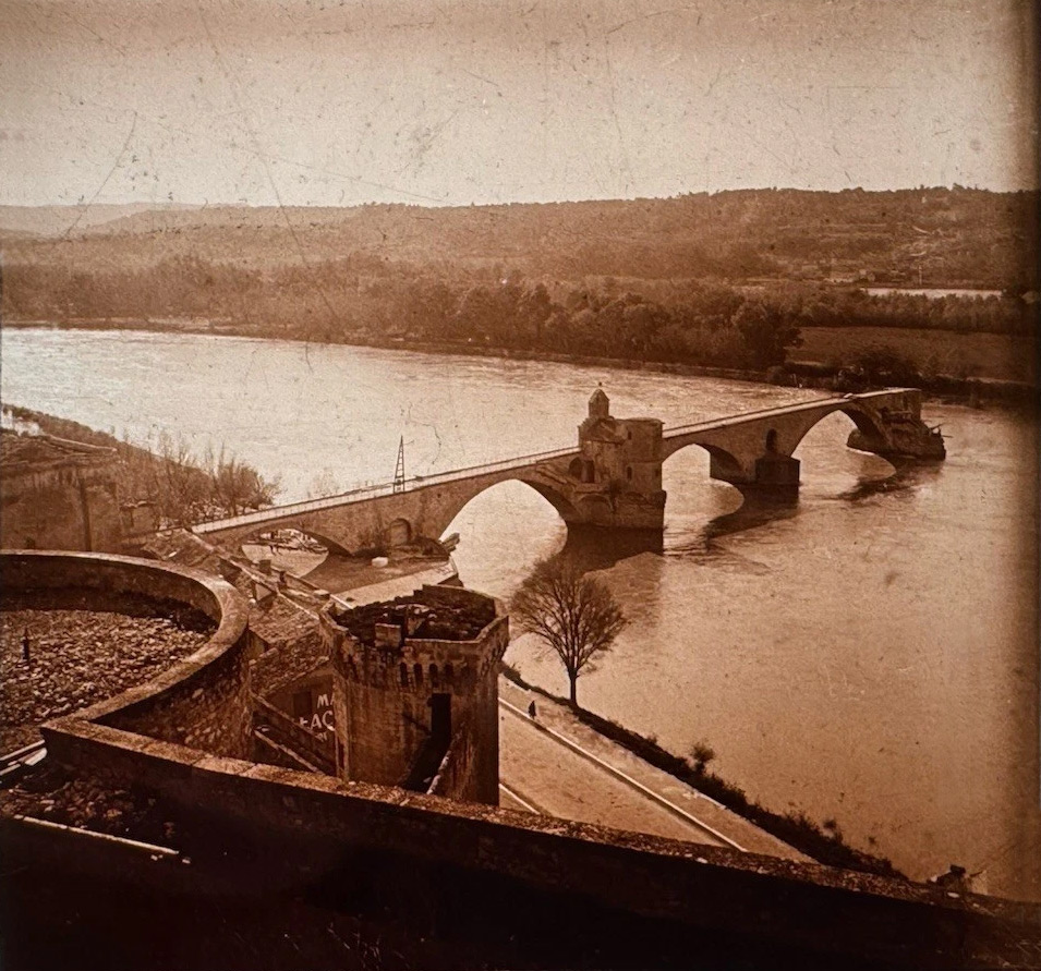 | 5435 Les remparts côté boulevard St-Michel 5456 Tour du Palais, l'ancien hôtel des monnaies, le Jacquemart 5457 Jacques Marc et sa femme dans le jacquemart de l'hôtel de ville 5464 Vue prise du Rocher des Doms, le Rhône, le pont St-Bénézet, les remparts 5468 Le Palais des Papes et le pont St-Bénézet vus de l'île de la Barthelasse 5470 Un restaurant dans l'île de la Barthelasse, le Palais des Papes Photos anonymes stéréoscopiques sur verre légendées et datées, issues de la fiche d'une vente aux enchères passée. |